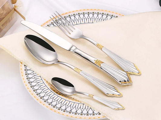 Aurelio | 24-teiliges Besteckset – Edelstahl in Gold & Schwarz, elegantes Design