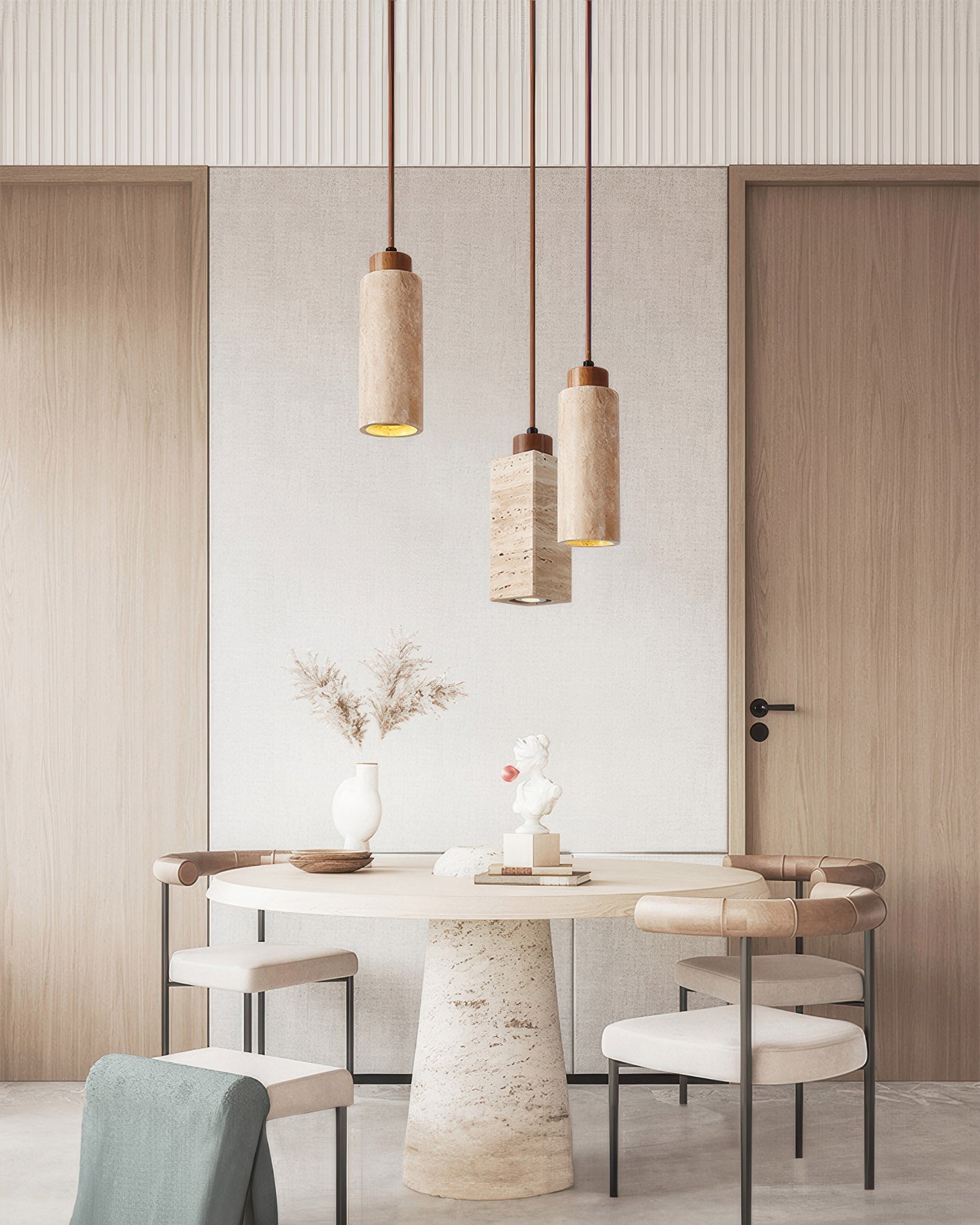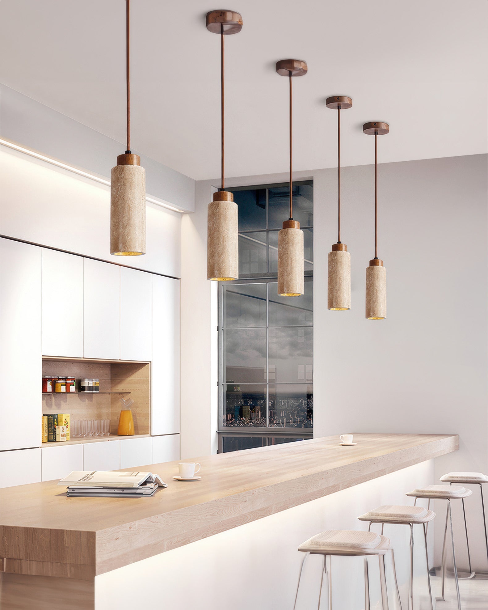 Die Stein-Harmonie Wabi-Sabi Elevation Pendelleuchte für Essräume verkörpert die ruhige Schönheit der Natur und minimalistisches Design. Diese Pendelleuchte erfüllt Ihr Zuhause mit einem sanften, beruhigenden Licht und schafft eine Atmosphäre von Frieden und Gelassenheit.
