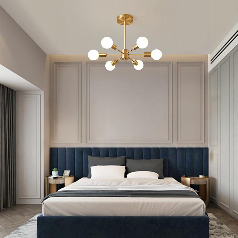 OrionNova – Großer 6-flammiger Sputnik-Kronleuchter im Messing-Finish (G80 Opal-Glühbirnen kompatibel)